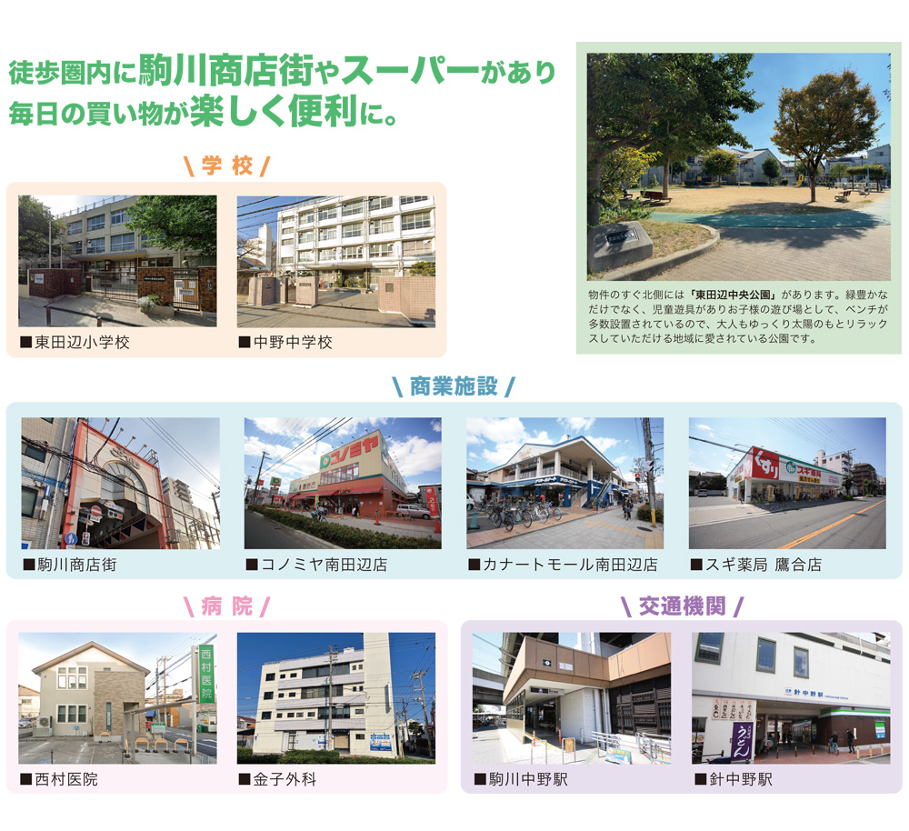 | 交 通 | 近鉄南大阪線「針中野」駅より徒歩約6分 Osaka Metro谷町線「駒川中野」駅より徒歩約9分 |