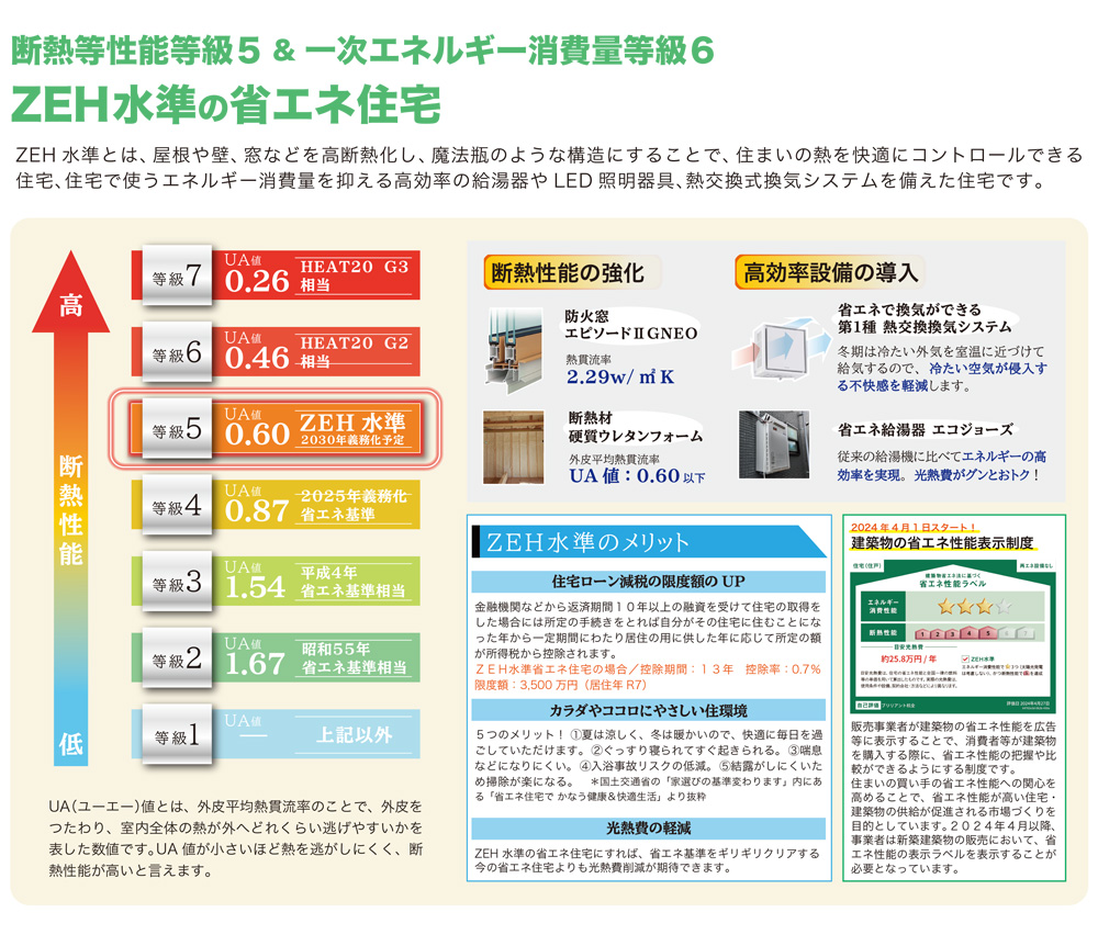 | 省エネ基準 | ZEH水準(断熱等性能等級5・一次エネルギー消費量等級6) | ||