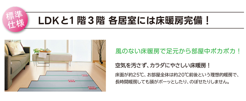 | 備 考 | 床暖房付(LD・洋室3室) 、衣類乾燥機付(乾太くん5㎏) カワック付 、間取り変更可能 |